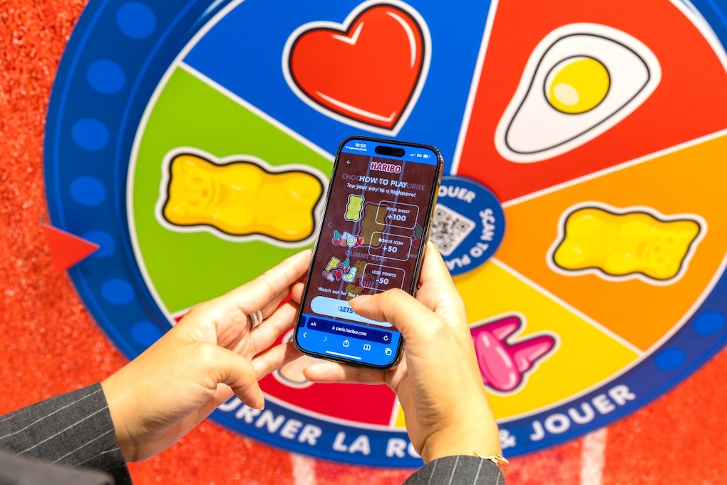 The Haribo high profile pop-up combines physical and digital versions of its ‘Giant Wheel of Fortune’ game, allowing shoppers to spin the wheel at the in-store display or interact digitally with the brand through a QR code.