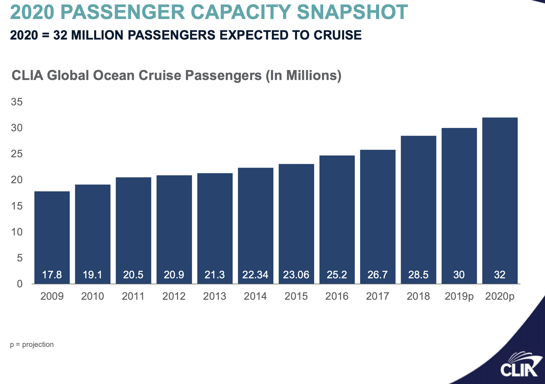 INTERNATIONAL. The Cruise Lines International Association (CLIA) has revealed in its annual State of the Cruise Industry Report that 32 million passengers are expected to go on a cruise in 2020.