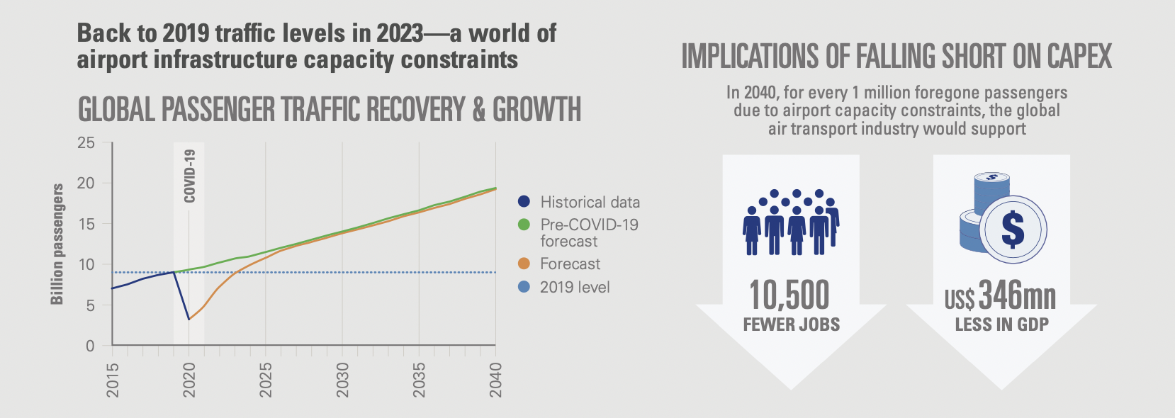“In normal times, addressing the growth of passenger demand in the face of global airport capacity constraints already poses a significant challenge, but the pandemic has dramatically reduced airport revenues, adding even greater challenges to meeting long-term capacity needs.”
