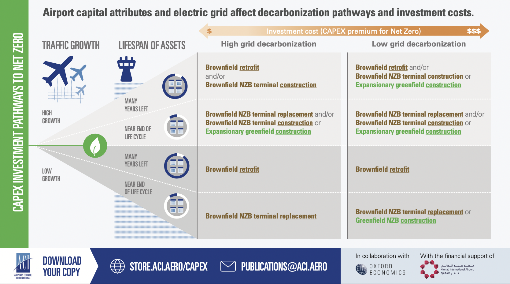 “This support could take the form of the development and access to renewal energy sources, reducing electricity purchase through energy efficiency measures, improving access to green financing instruments, adapting airport infrastructure to serve alternative fuel aircraft, or fostering the development of negative emission technologies.”