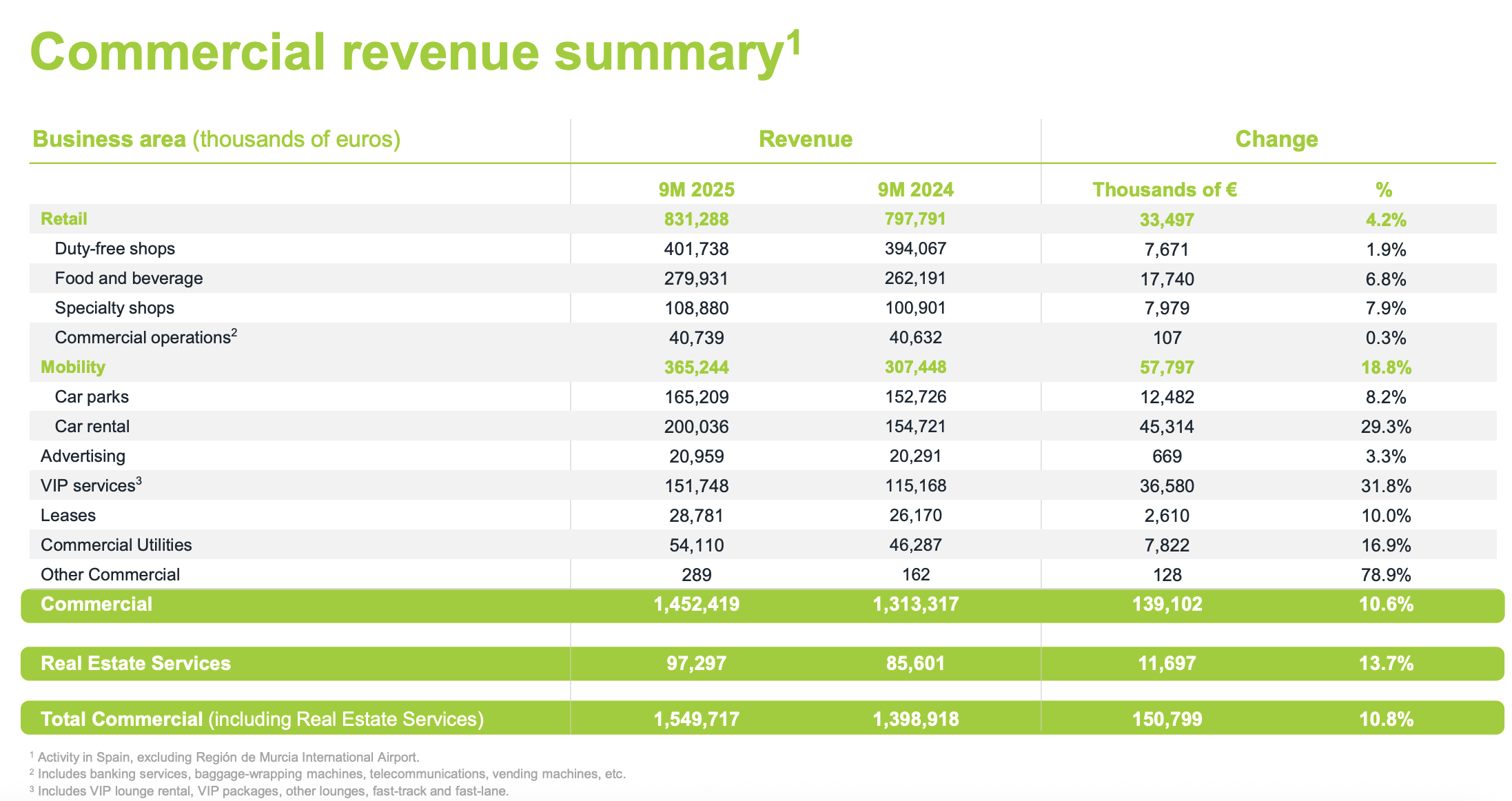 SPAIN/INTERNATIONAL. Airport company Aena has reported a strong performance for the first nine months of 2025, with commercial revenues rising +10.8% year-on-year to €1,466.1 million.