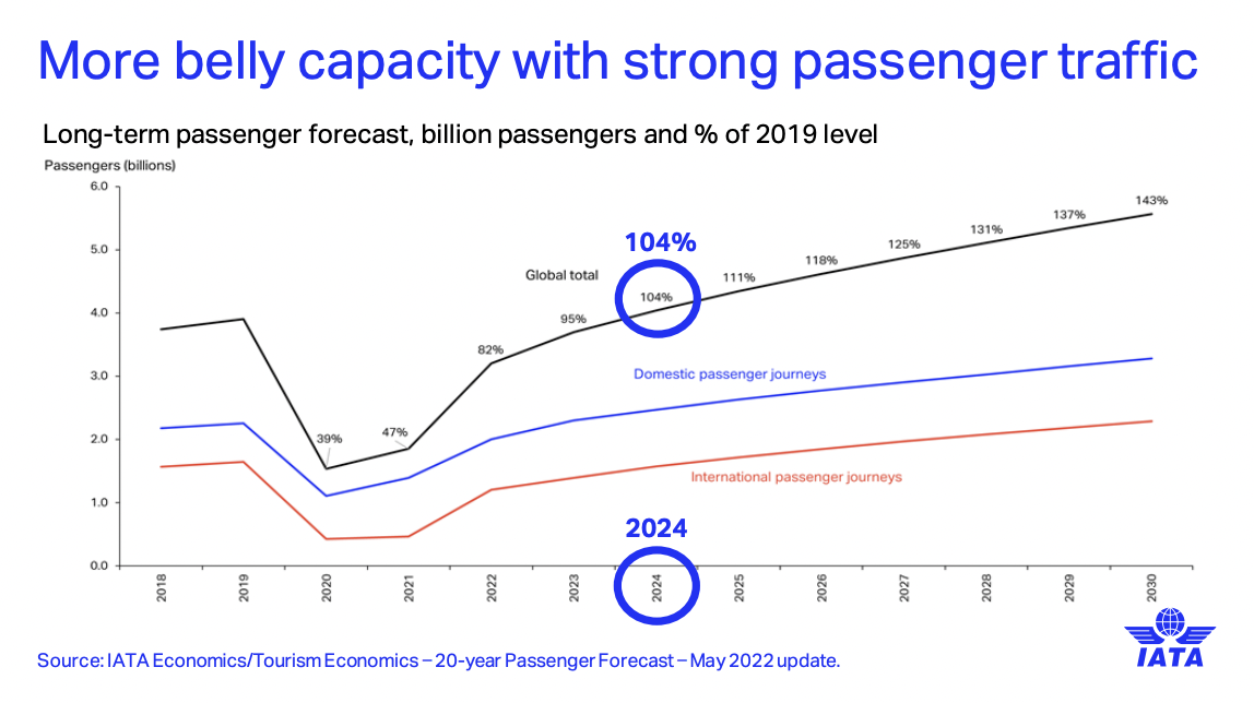 - Strong pent-up demand, the lifting of travel restrictions in most markets, low unemployment in most countries, and expanded personal savings are fuelling a resurgence in demand that will see passenger numbers reach 83% of pre-pandemic levels in 2022.