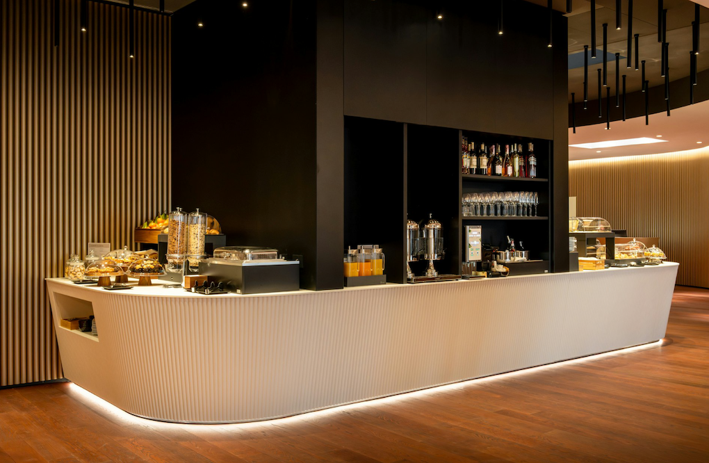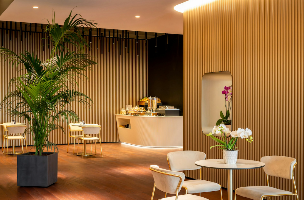 The design emphasises a calm, contemporary aesthetic, enhanced by natural light and supported by two private areas tailored for business travellers seeking discretion.