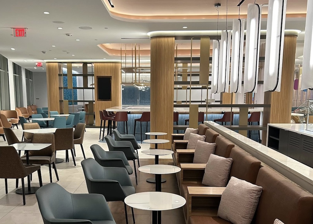 The upgraded lounge introduces a more segmented layout, with four distinct themed zones and increased seating capacity designed to accommodate higher throughput while maintaining dwell quality.