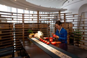 The experience is anchored by à la carte dining with premium tableware, curated artworks including pieces by Anish Kapoor, and dedicated wellness facilities.