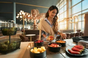 Plaza Premium First delivers a high-touch, privacy-led experience with à la carte dining, curated beverages and personalised service, while the adjacent Plaza Premium Lounge focuses on accessible premium comfort.