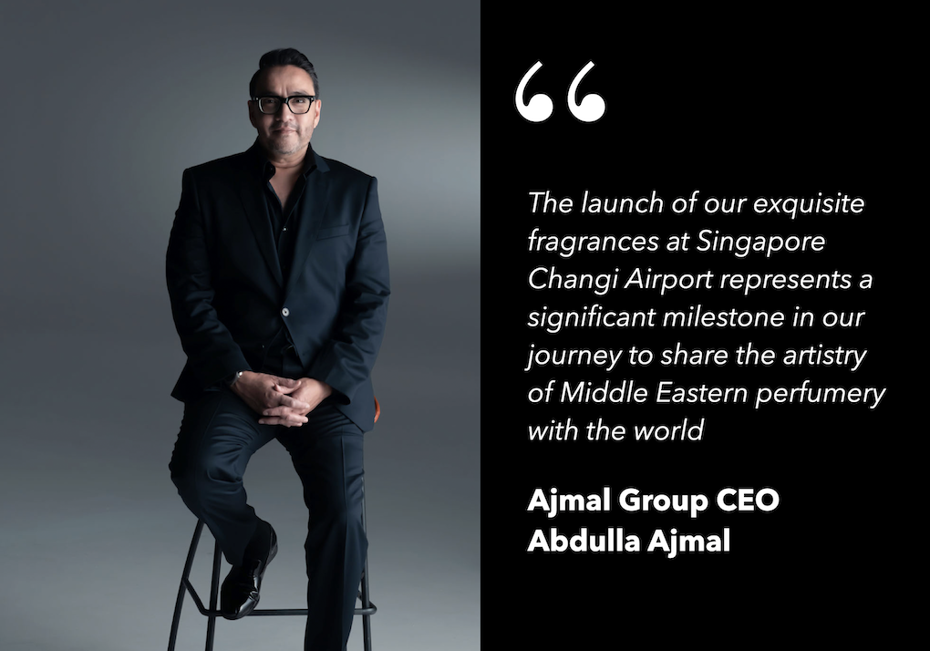 Ajmal Group CEO Abdulla Ajmal commented, “The launch of our exquisite fragrances at Singapore Changi Airport represents a milestone in our journey to share the artistry of Middle Eastern perfumery with the world.