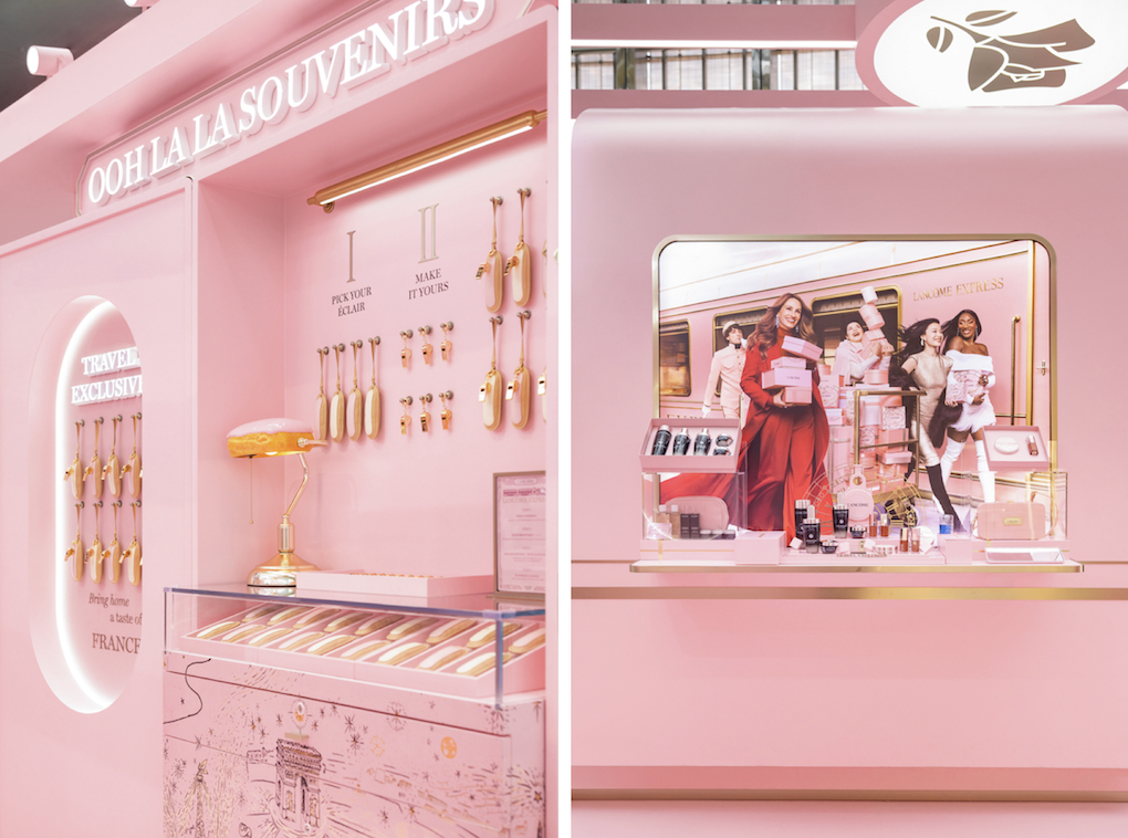 The experience culminates in the Ooh La La gifting area, inspired by elegant luggage compartments. Travellers can discover limited-edition Lancôme Holiday sets, customisable éclair leather charms with whistles and mini pink luggage accessories.