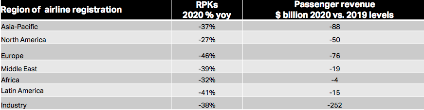 INTERNATIONAL. The International Air Transport Association (IATA) has said that airline industry passenger revenues could fall by US$252 billion or -44% below the 2019 figure due to the impact of travel restrictions and the expected global recession brought on by the COVID-19 crisis.