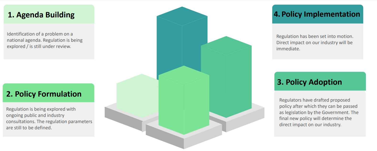 Each represents a stage of policy development to help the industry determine the most appropriate response based on regulatory timescales.