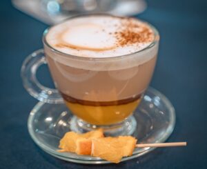 Jiménez’s winning entry was named ‘Cappuccino Isleño’ (pictured above), with a recipe combining fresh mango, hazelnut syrup, milk and coffee, finished with orange zest and cinnamon.