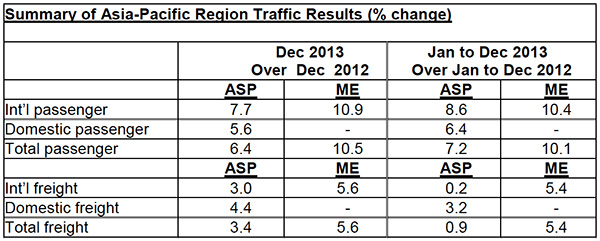 The organisation attributed the strong growth in Asia Pacific to robust domestic economic growth and the rising propensity for travel. International traffic was up +8.6% while domestic traffic rose +6.4%.
