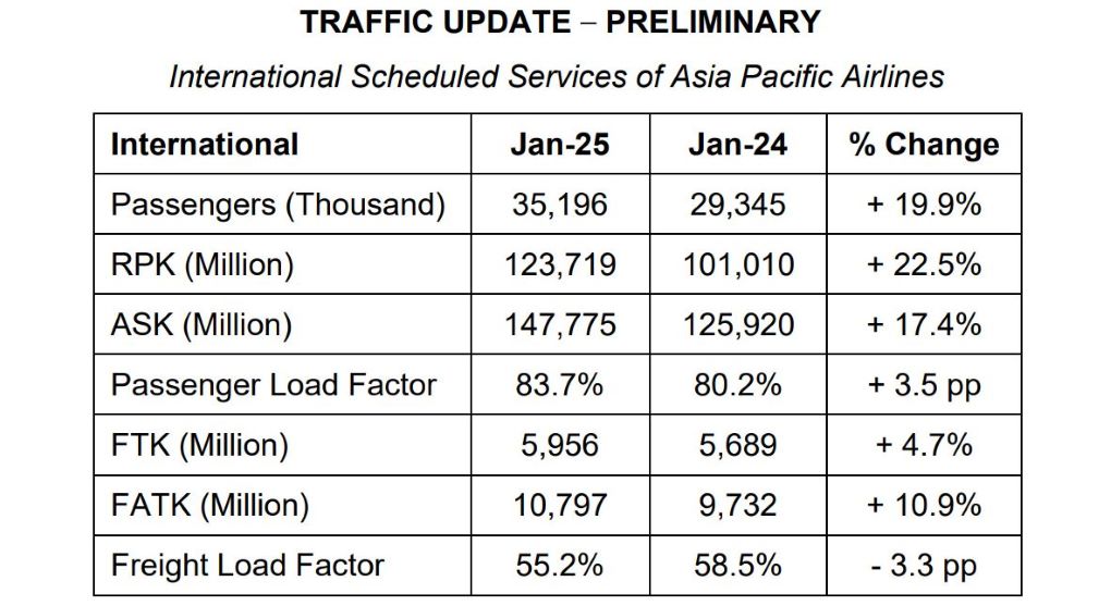 Preliminary figures from the Association of Asia Pacific Airlines (AAPA) reveal that the region’s airlines served a total of 35.2 million international passengers during the month.