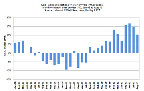 ASIA PACIFIC. The Pacific Asia Travel Association (PATA) today released preliminary figures for international visitor arrivals into Asia and the Pacific for the month of August, indicating a year-on-year growth of +10%.