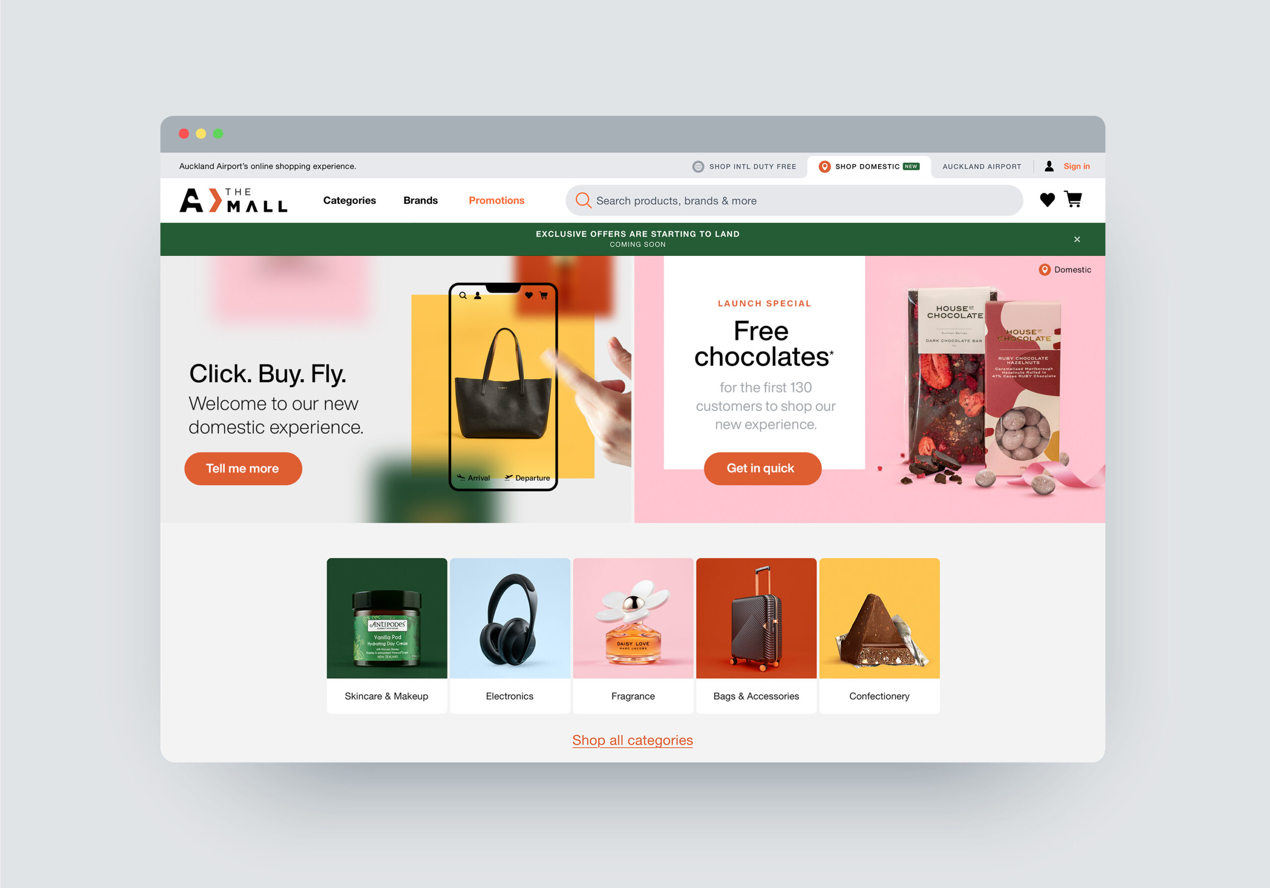 NEW ZEALAND. Auckland Airport today (6 October local time) extended its successful online click-and-collect marketplace The Mall to domestic travellers.
