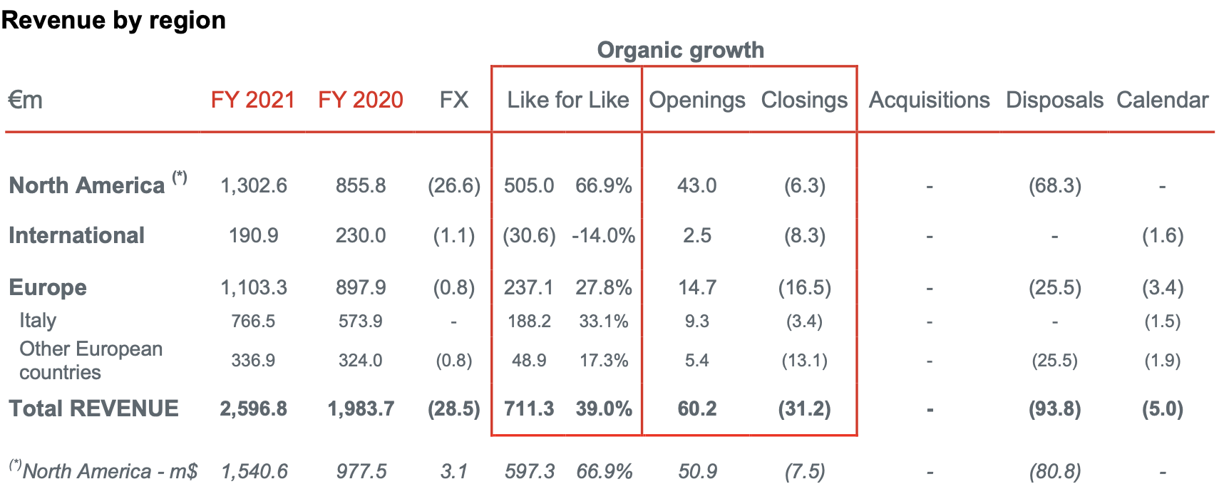 Like-for-like sales performance rose +39%, with continuous improvement during the year. Across the group, 74% of stores were open as of 31 December 2021.