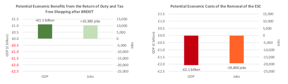 UK. Ending tax free sales at UK airports from 1 January will cost the UK economy £2.1 billion in GDP and will put 19,400 jobs at risk nationally. That’s according to a York Aviation economic impact assessment of the government decision announced abruptly on 11 September.