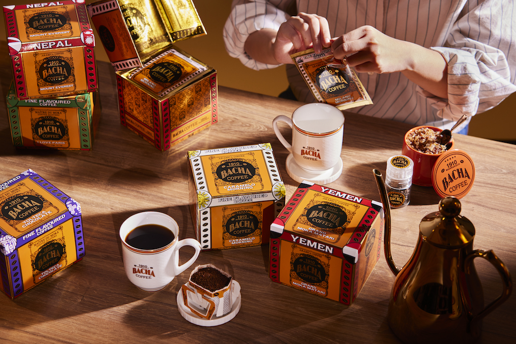 Highlights include the Bacha Coffee Bag Gift Box Collection, which features blends such as Tolteca Chocolate Coffee and Mount Everest Coffee; and the Signature Nomad Collection, which offers rare blends such as Blue Mountain Wallenford and Grand Moka Matari coffees.