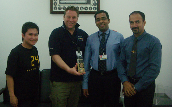 Muscat Duty Free General Manager Tom Byrne (with bottle) and team in Oman | ||