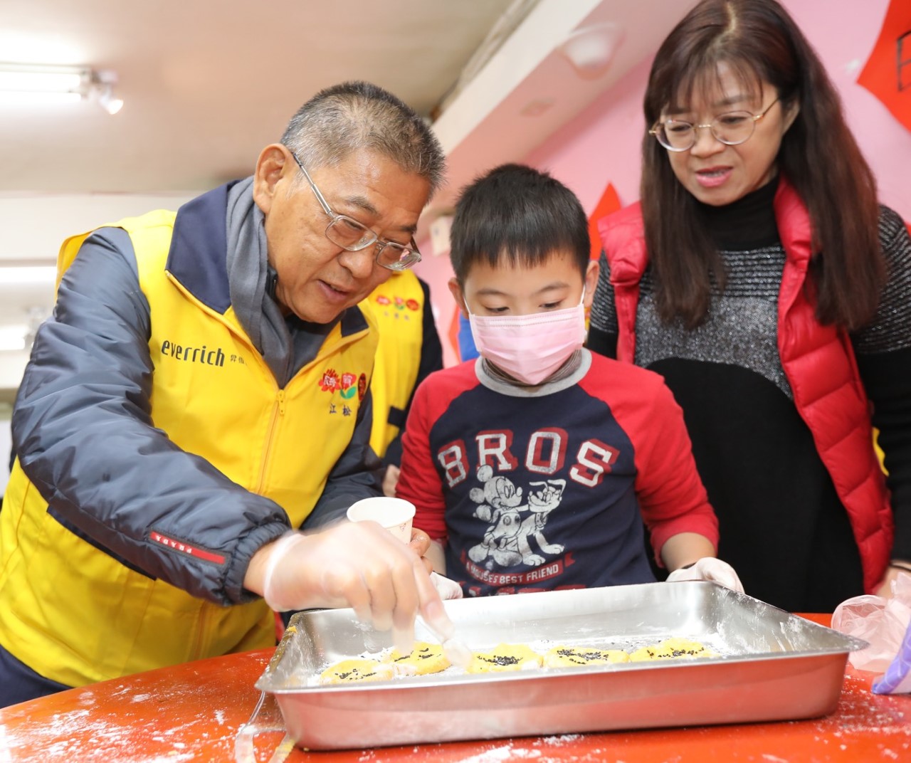 Chairman Chiang was on-hand to support the children’s baking efforts and accompanied the elderly at lunch. Ever Rich staff members encouraged the exchange of gifts and festive blessings.