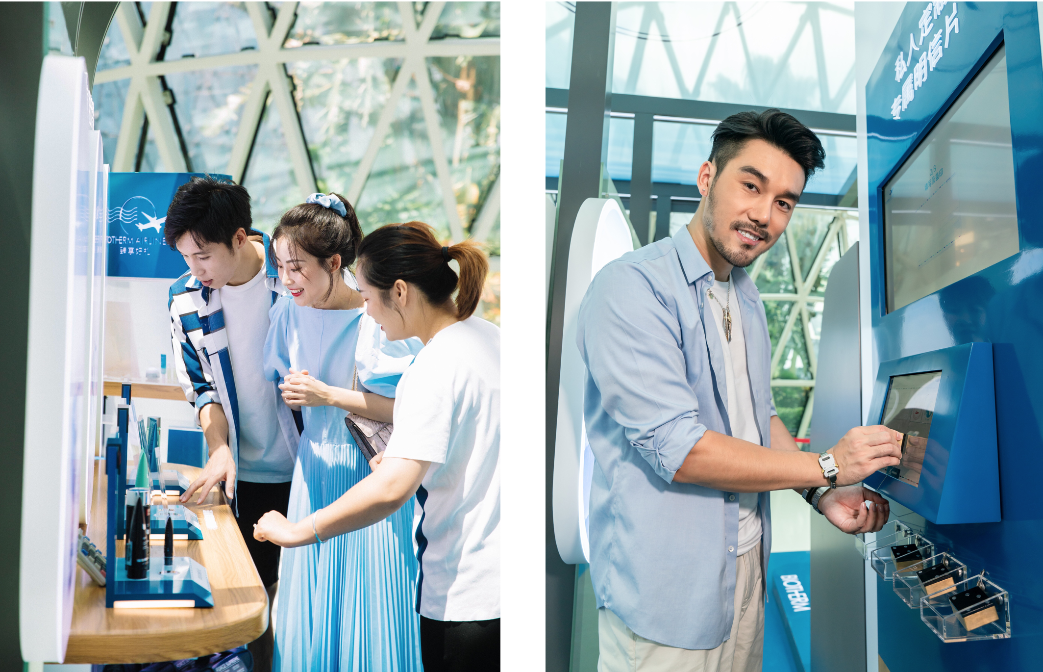 The pop-up also featured some compelling digital engagement zones. The first was a multi-sensorial virtual paper plane game, where visitors had to virtually steer a paper plane towards its destination in Haitang Bay. The second was a personalisation zone, where guests used phygital stamps to create customised postcards to take home or share on social media.