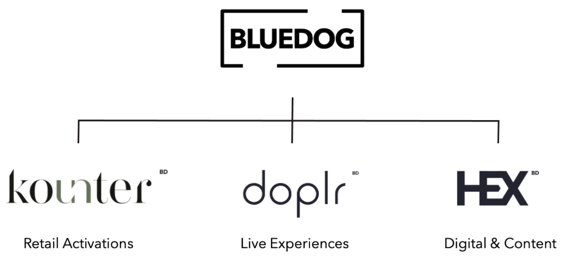UK. Events and digital specialist Bluedog Productions has added three new agencies – doplr, focusing on live experiences, Kounter for retail activations, and Hex for digital and content solutions – to its group line-up.