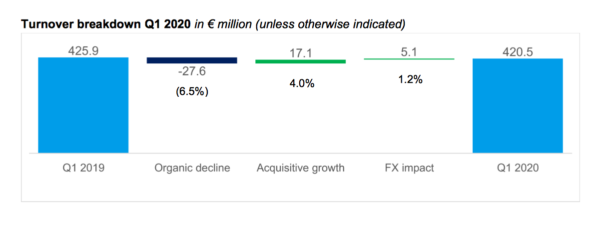 NETHERLANDS. B&S Group, which counts travel retailing and distribution among its activities, has recorded Q1 turnover of €420.5 million, down by -1.3% year-on-year (€415.4 million at constant currency rates). Turnover fell by -5.3% in organic terms.