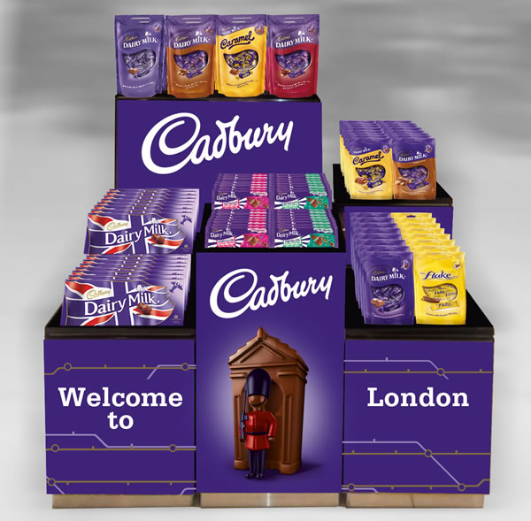 The new Cadbury “˜Sense of Place’ strategy combines localised in-store communications featuring “˜destination icons’ that reflect local landmarks and culture, alongside exclusive souvenir sleeves supporting the travel retail exclusive tablet range |