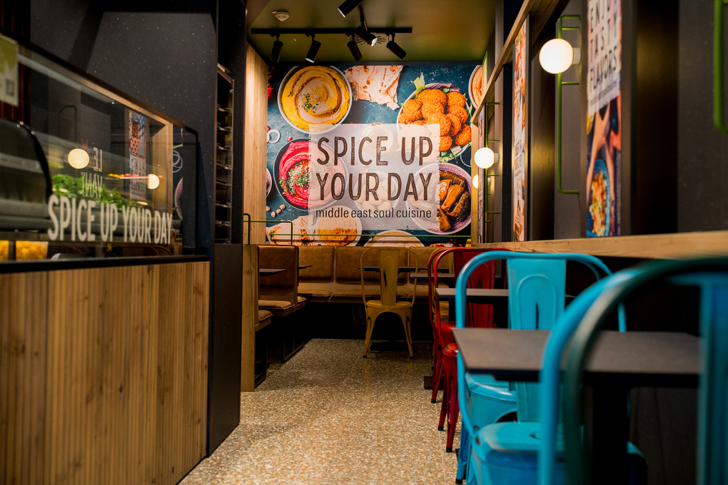 The Levant concept has been designed to be colourful, vibrant and lively, “just like the souks and street markets in the trendiest Middle Eastern cities”, casualfood said. It features natural materials such as larch wood, marble, terrazzo and clay.