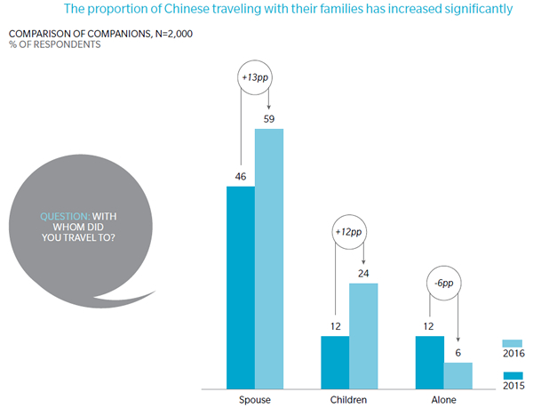 The report is based on a survey by Oliver Wyman of 2,000 Chinese travellers. It aims to reveal major shifts in the tastes of Chinese travellers, and indicates that the rising number of Chinese outbound travellers are less focused on shopping, travel more frequently with family and children, plan their own holidays and seek attractive themes or associations as well as dining opportunities.