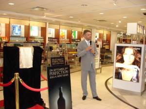 Today saw the New York duty free launch of Chivas Regal 25yo, with the formal unveiling taking place at the elegant DFS Group store at JFK Airport T4; (Right) Christophe Lemarié welcomes guests to “a unique day in the history of Chivas Regal” | |