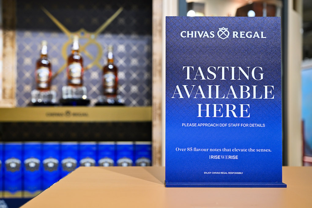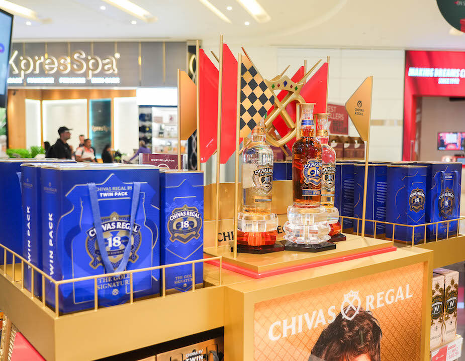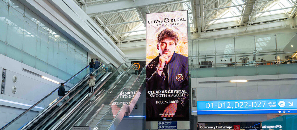 At Dubai International Airport Terminal, Chivas Regal has secured prominent visibility in partnership with Dubai Duty Free.