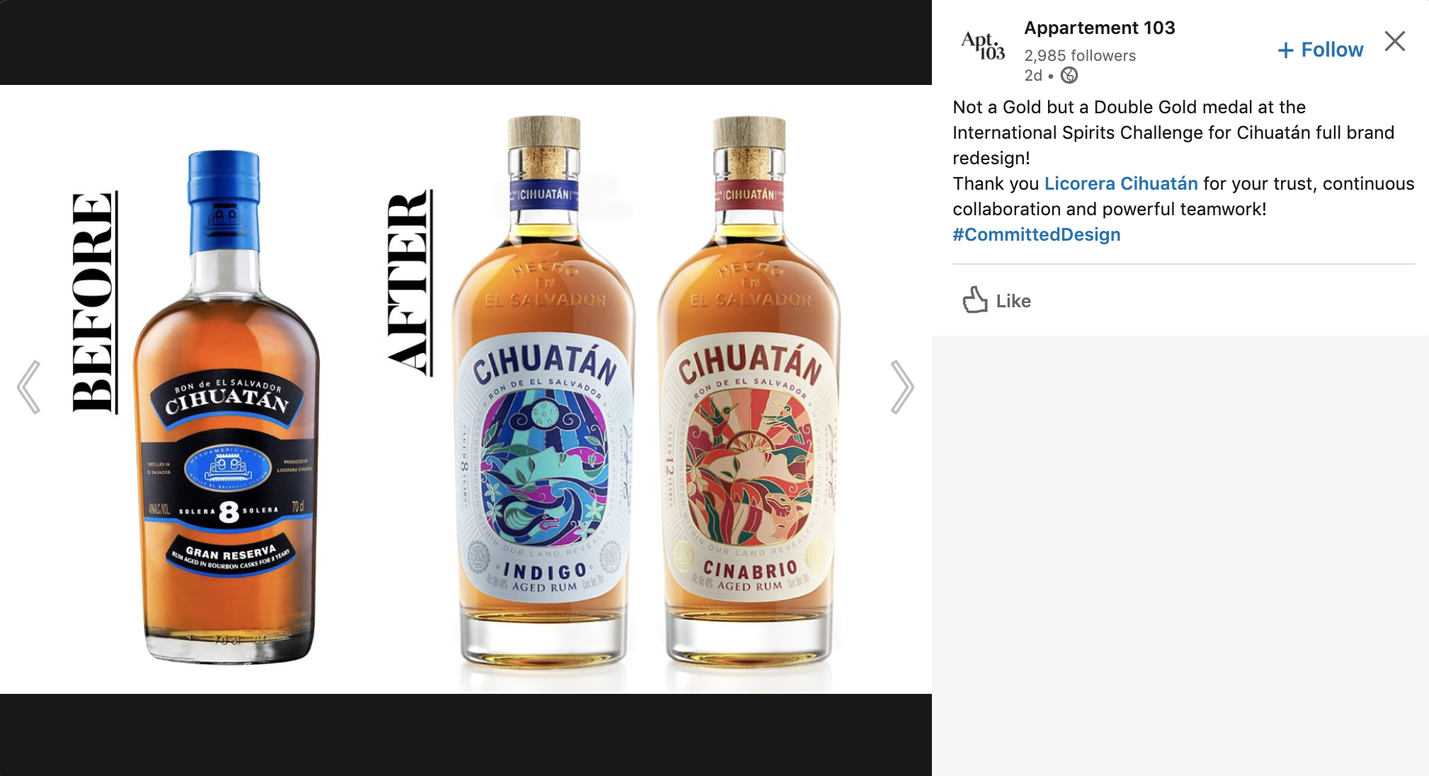 Licorera Cihuatán has been awarded a Double Gold Medal at the International Spirits Challenge 2020 for the vibrant full brand redesign of Cihuatán.