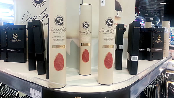 The WDFG promotion at Madrid-Barajas Airport T4 lets travellers enjoy a taste of Cinco Jotas Iberian ham sliced by a Master Carver (above) and discover the new product range (below) |