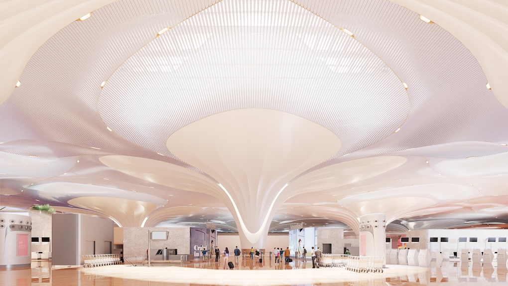 The first phase of the new Mumbai airport introduces Terminal 1, capable of welcoming 20 million passengers a year. Its architecture, inspired by the lotus flower, has been developed with sustainable design practices.