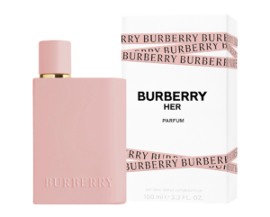 Burberry Her Parfum is a gourmand fragrance with a fruity opening and warm dry-down. It opens with mellow cherry and juicy pear top notes, heart notes of amber accord, freesia, whipped cream and patchouli oil, and base notes of moss, gourmand vanilla absolute and musk.
