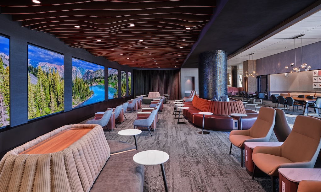 The Sky Club also debuts Delta’s first digital immersion wall (pictured below), offering guests a 4D experience through panoramic visuals and soundscapes of Utah landmarks.