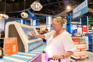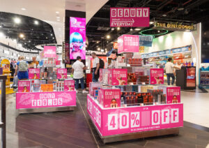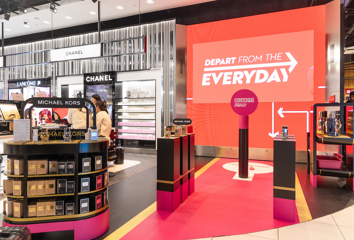 A high-profile promotion area highlights beauty best-sellers and offers an ideal selfie opportunity for travellers