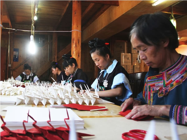 To help preserve and promote this craft, DFS sourced the majority of the paper for its Fall/Winter 2013 campaign from this rural community of 40 families, and worked together with 60 skilled artisans over three months in the process of creation, which spanned harvesting bark from local mulberry trees to organically dye the resulting paper, and the final origami folding techniques.