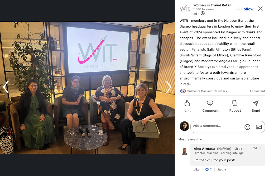 WiTR+ noted on LinkedIn: “The panel explored various approaches and tools to foster a path towards a more environmentally conscious and sustainable future in retail.”
