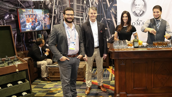 Pictured is the Diplomático Rum team at the brand’s stand at IAADFS: Diplomático Rum Business Development Manager Mario Navarro (seated), Diplomático Rum Brand Manager José-Luis Ballesteros and Diplomático Rum Global Marketing Director Mark Batey |