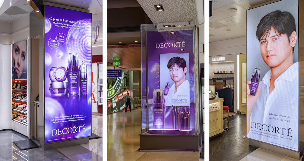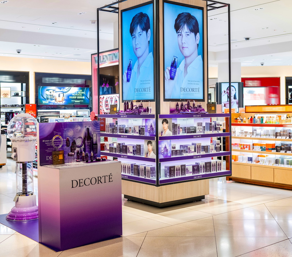 The Los Angeles activation was the focal point of the campaign and ran from 31 August to 30 September, coinciding with the LA Dodgers’ home game season. In addition to the in-store pop-up, DECORTÉ ran a full digital billboard takeover across all ten screens at the DFS store in the Tom Bradley International Terminal.