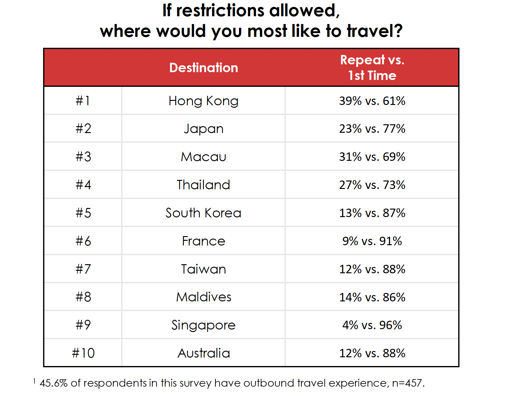 The survey – which last month canvassed the opinion of more than 1,000 mainland Chinese travellers – also revealed that the Special Administrative Regions of Hong Kong and Macau, as well as overseas destinations Japan, Thailand and South Korea are at the top of Chinese travellers’ wish lists for when leisure travel opportunities open up. France tops the list of non-Asia Pacific destinations.