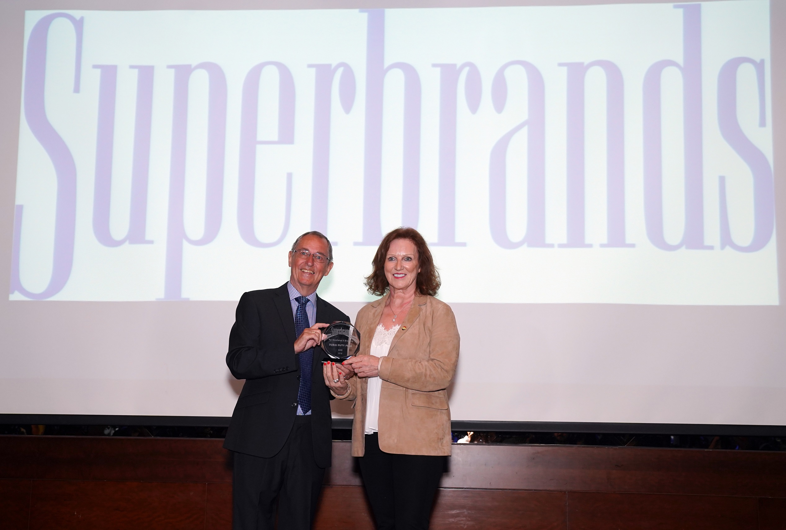 Present to receive the award from Mike English, Director of Superbrands Middle East, was Dubai Duty Free Senior Vice President for Marketing Sinead El Sibai.