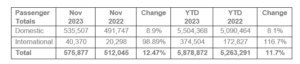 Domestic travel volume was +8.1% higher than the first 11 months of 2023 while the number of international passengers more than doubled.