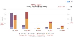 Sales to foreigners slipped -11.5% year-on-year and -3.8% month-on-month to KRW751,217,952.922 (US$511.9 million) on customer numbers up +0.4% year-on-year and down -10.5% month-on-month to 906,292.