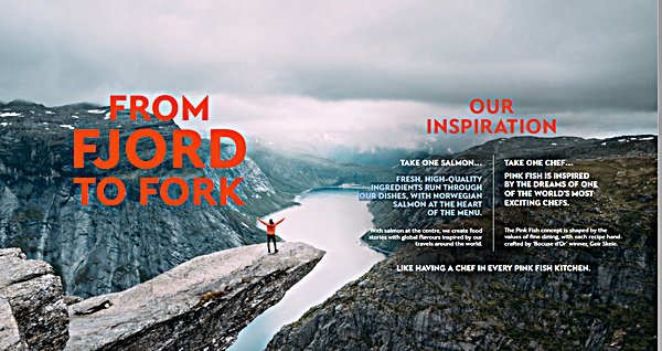 “World champion Chef Geir Skeie and their Pink Fish concept deliver new ways of enjoying cool and tasteful salmon dishes; sustainably sourced, healthy, high-quality ingredients prepared in easy and smart ways, quickly and with a lot of good humour. Just as we like it at Stavanger airport, Sola. Serving as the airport for the [western Norway] food county Rogaland commits us to delivering the best and adding Pink Fish to our mix is something we’re sure our passengers will notice and appreciate.”