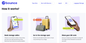 - Bounce, headquartered in San Francisco, is building a global luggage storage network. Other investors include leading US venture capital firm Andreessen Horowitz (a16z).
