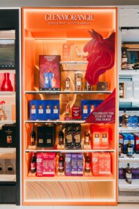 A 360° retail campaign across Glenmorangie’s global travel retail network supports the launch. The in-store displays feature warm lighting and fluid forms inspired by the horse motif, designed to evoke movement and energy.