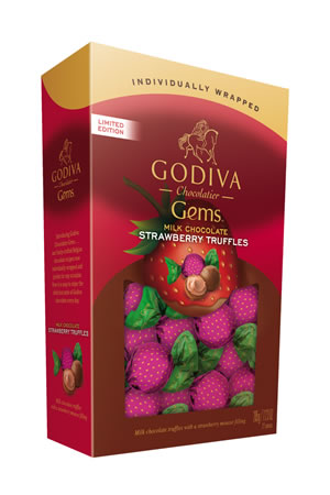 A limited edition Milk Chocolate Strawberry Truffle has been added to the Gems Collection. The Gems strawberry ruffle (22 per box) is filled with strawberry mousse and coated in milk chocolate, then foil-wrapped to look like a mini strawberry.